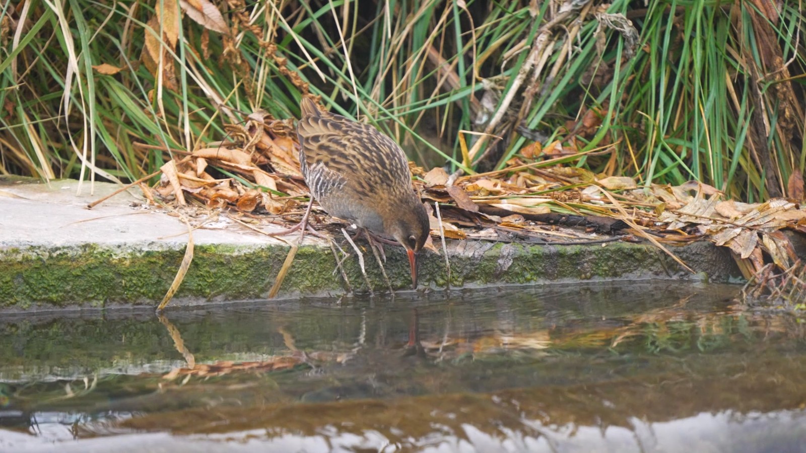 西方秧鸡(Rallus aquaticus)觅食行为展示